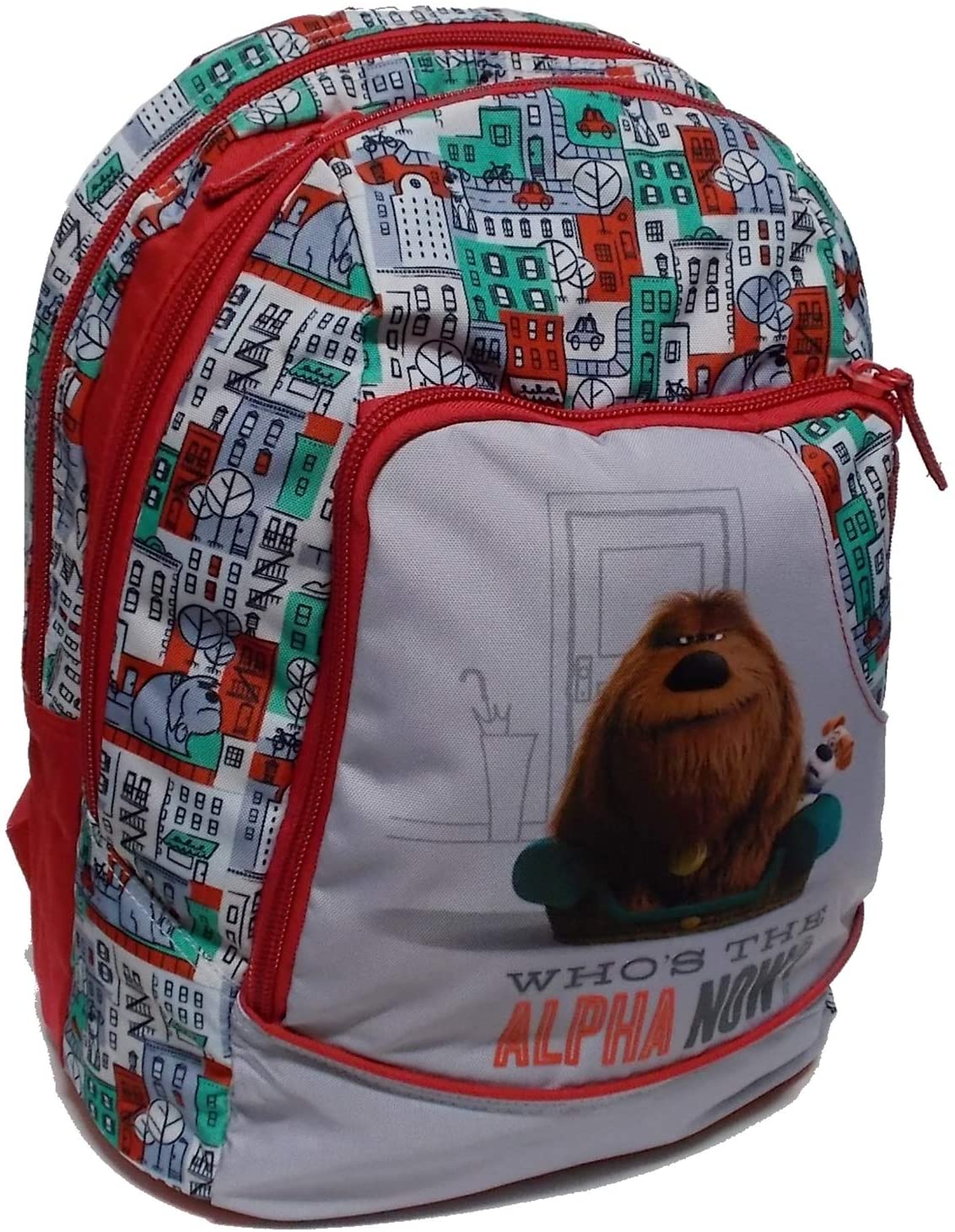 - Zaino Tondo con cerniere tasca frontale con cerniera. In tessuto con stampa serigrafica di Alpha Now personaggio Pets.